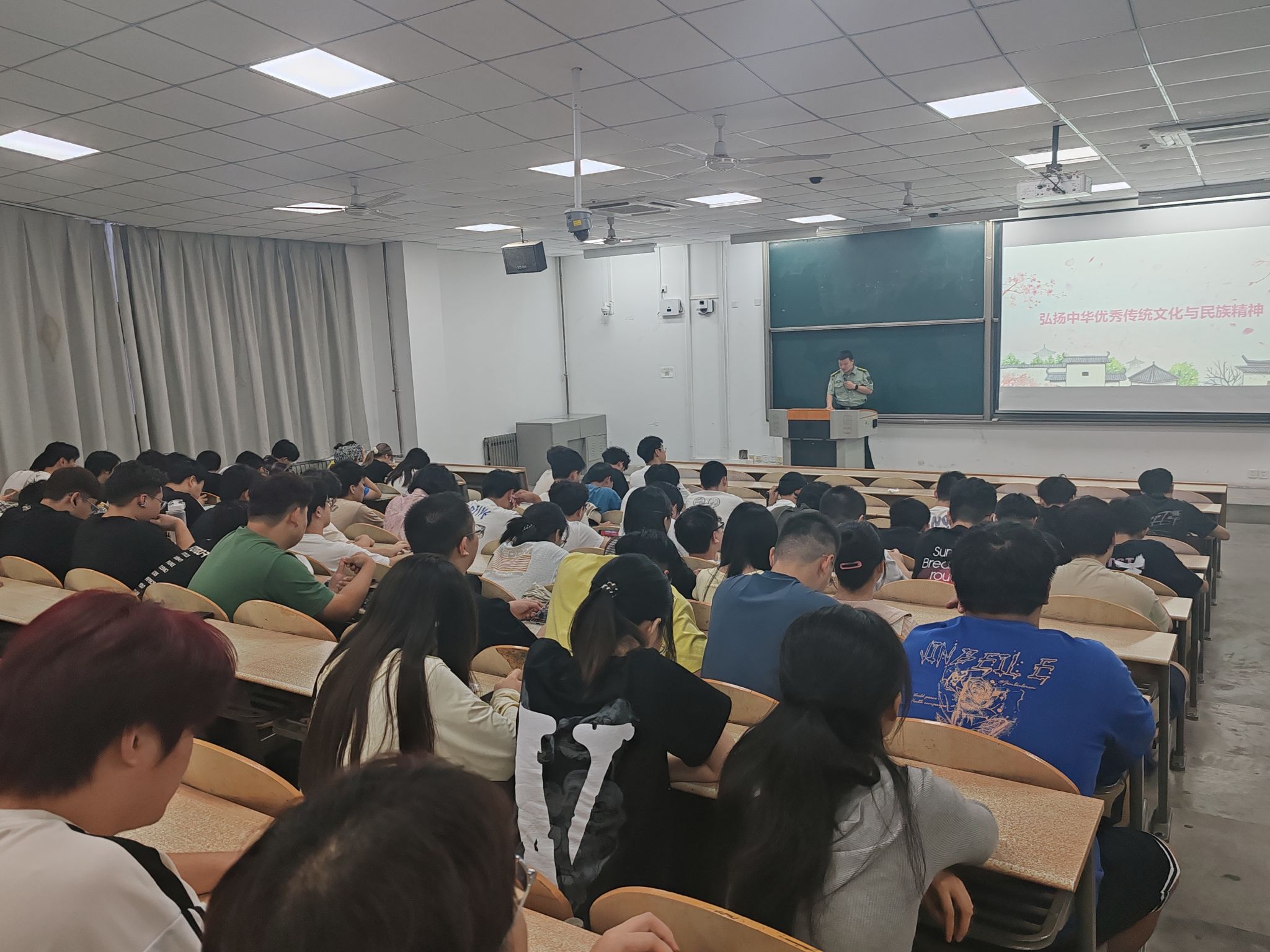 会上,刘冬老师围绕中华优秀传统美德与民族精神的内涵作了主题发言。他结合历史典故与现实案例,生动阐述了自强不息、厚德载物等民族精神在当代的价值体现,启发同学们思考如何将传统文化精髓与个人成长相结合。在交流环节,同学们就关心的话题与刘老师进行了互动,刘冬老师结合学生实际给予了细致解答,现场氛围庄重而热烈。