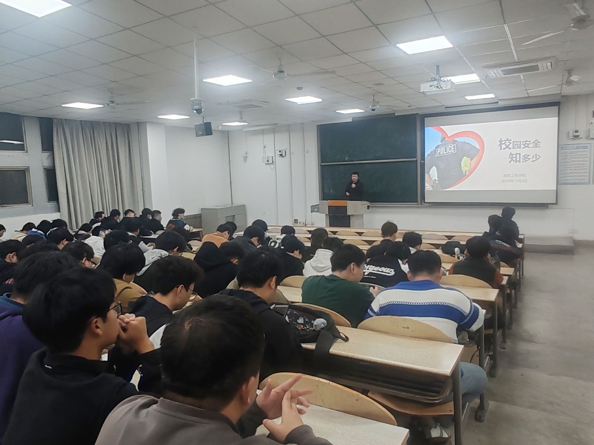 11月3日,建筑工程学院2023级在教1-104召开年级大会,会议由2023级辅导员刘冬主持,全体2023级学生参加。旨在部署学校审核评估相关工作,强化学生行为规范,筑牢校园安全防线。