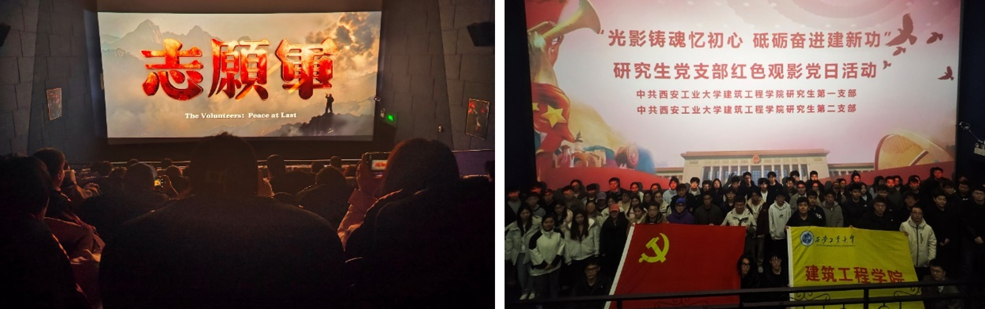 为深刻感悟抗美援朝战争的伟大精神内核,扎实推进爱国主义教育常态化长效化,建筑工程学院研究生党支部于12月1日组织开展“光影铸魂忆初心 砥砺奋进建新功”红色观影主题党日活动。学院研究生党支部党员、发展对象及积极分子等100余人共同观看电影《志愿军:浴血和平》,从革命历史中汲取奋进力量。