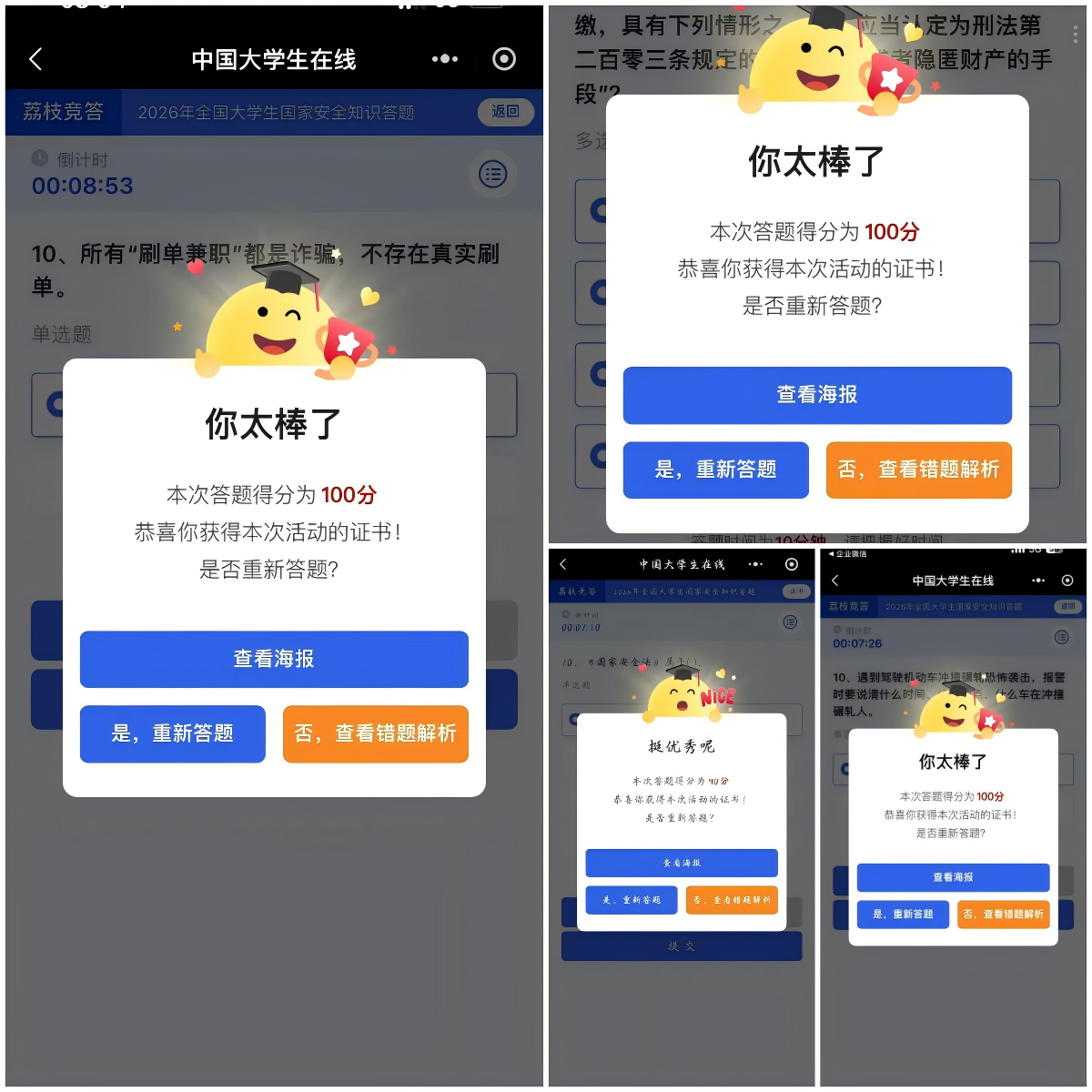 为巩固学习成果,学院同步组织开展国家安全知识答题活动。同学们积极参与,通过线上查阅资料、线下交流探讨等方式系统梳理国家安全知识体系,深入学习总体国家安全观核心要义与法律法规要点,充分展现出建工青年积极学习国家安全知识、主动提升安全素养的良好精神风貌。